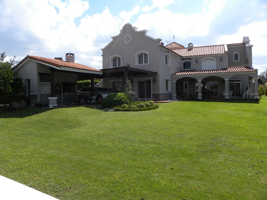 4 dormitorios en PA (1 suite), depend. De servicio, escritorio, cocina amplia y luminosa, living doble altura, comedor diario + principal, 5 baños, garage cubierto p/ 4 autos, galería, asador c/ horno chileno, amplio jardín con pileta, depósito.